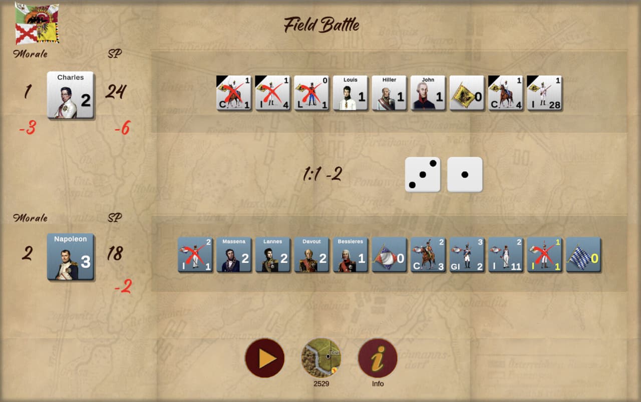 Napoleon's Eagles: Game of the Napoleonic Wars - это стратегический симулятор Наполеоновских войн, адаптированный из классической настолки Война и мир. Геймеры могут возглавить войска Наполеона или выступить против него, участвуя в ключевых военных кампаниях на территории Европы, Египта и России. Тут есть как короткие исторические сценарии, так и масштабная многопользовательская кампания, охватывающая весь наполеоновский конфликт. Многопользовательский режим позволяет геймерам испытать грандиозную стратегию ведения войны в соревновательной обстановке, сосредоточившись на ключевых исторических сражениях и дипломатических решениях.