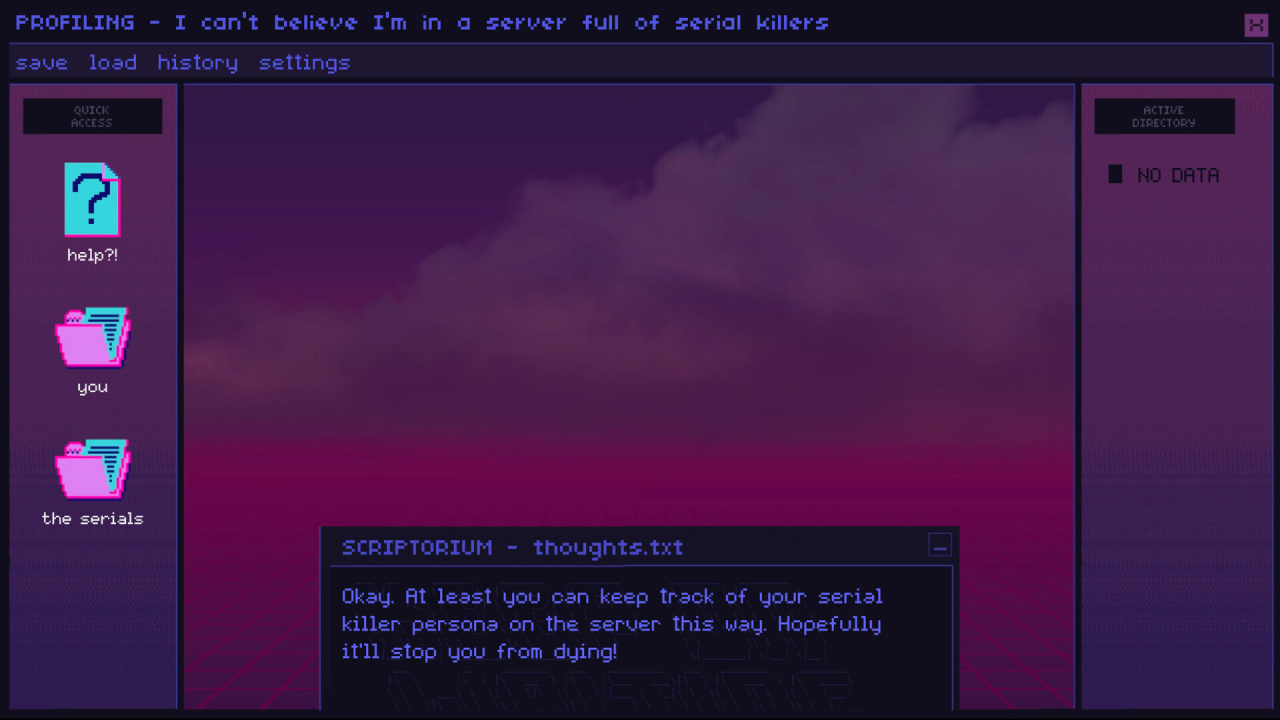 Глубокая система кастомизации позволяет создать уникального протагониста, настроив его имя, пол, внешность, характер и даже вымышленную биографию псевдоубийцы. Помимо общения в чате, доступен рабочий стол персонального компьютера, где можно писать книгу, играть в мини-игры и менять облик персонажа. Каждое действие и диалоговый выбор напрямую влияют на развитие сюжета, открывая доступ к более чем 20 различным концовкам. Проект предлагает необычную механику, где условно «хорошие» финалы часто приводят к печальным последствиям, а «плохие» оказываются спасительными.