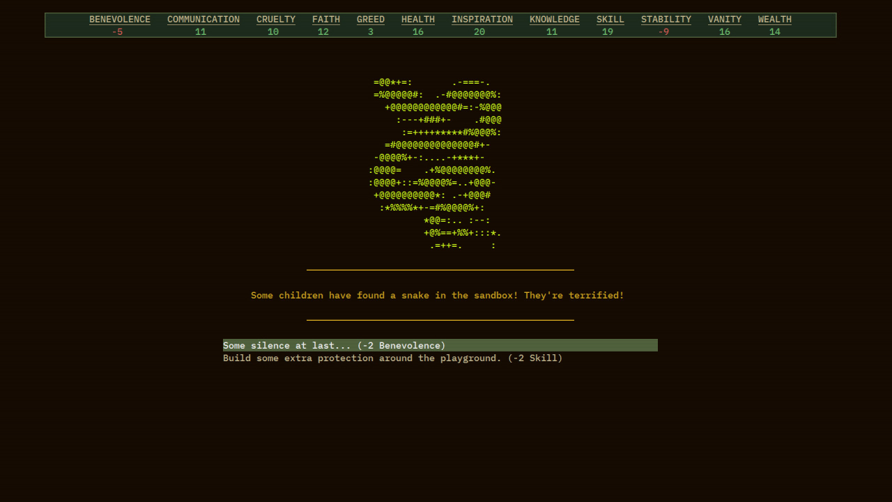 Доктрины, открываемые на протяжении всей истории, определяют, как развиваются учащиеся, влияя на идентичность и стратегию поселения. В тайтле сочетаются пошаговая стратегия и механика управления материалами, где решения, принятые на ранних этапах, должны иметь долгосрочные последствия. Поскольку проект ориентирован на реиграбельность, планировка острова и доступные ресурсы меняются с каждым новым прохождением, заставляя геймеров быть начеку. Хотя отсутствие традиционной графики сможет показаться необычным, текстовый интерфейс позволяет получить глубокий и захватывающий опыт.