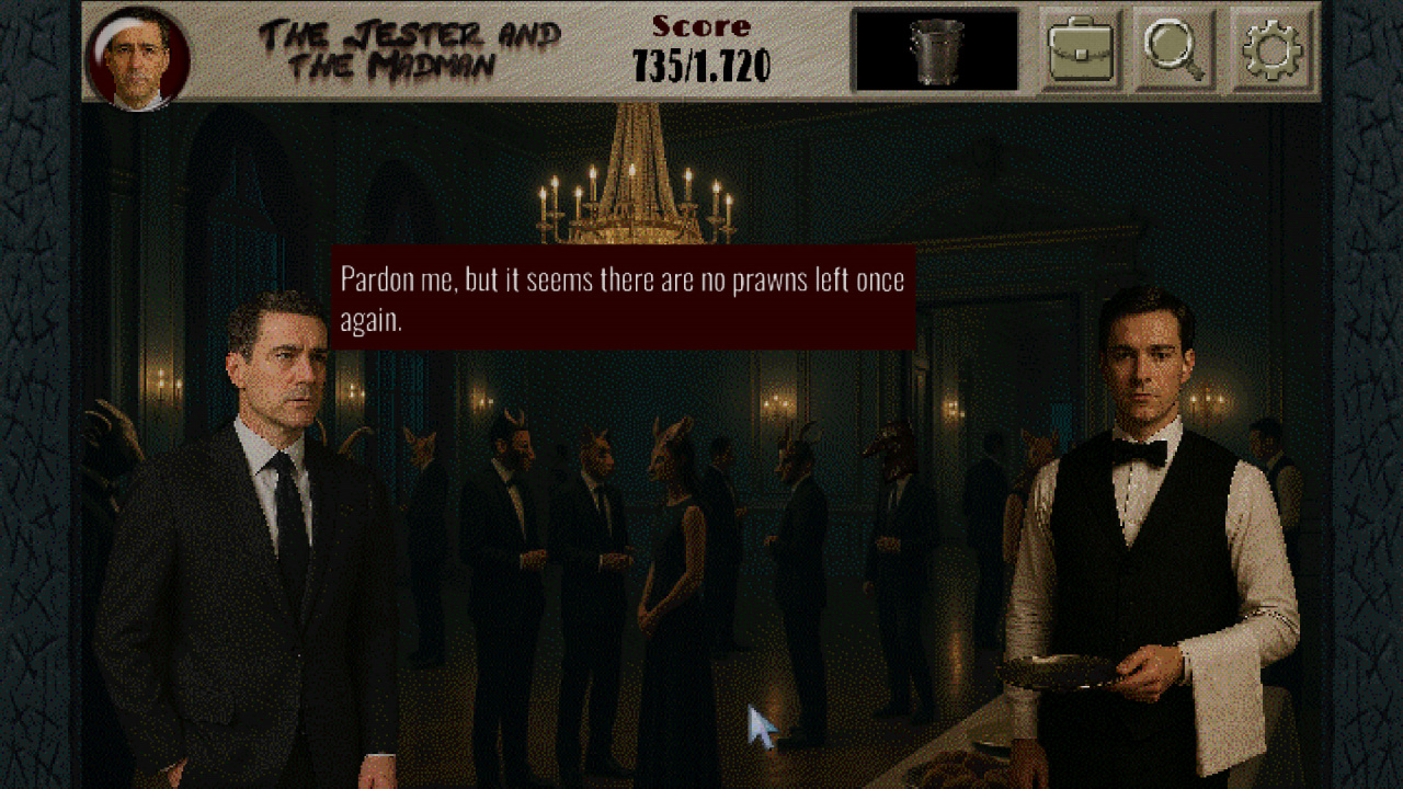 The Jester and the Madman — это насыщенное повествованием point-and-click приключение, где атмосфера лавкрафтианского ужаса сочетается с эстетикой 90-х. Визуальная составляющая проекта выполнена с помощью оцифровки реальных фотографий, что придает картинке уникальный и сюрреалистичный вид. Прохождение целиком сосредоточено на методичном исследовании детализированных локаций, взаимодействии с подозрительными персонажами и решении логических задач. Проект полностью исключает боевую систему и временные лимиты, предлагая сосредоточиться на интеллектуальных вызовах и погружении в гнетущую историю, полную тайн и паранойи.