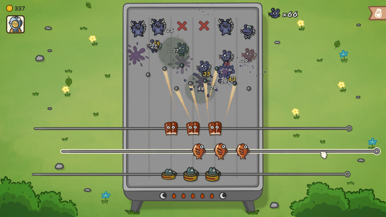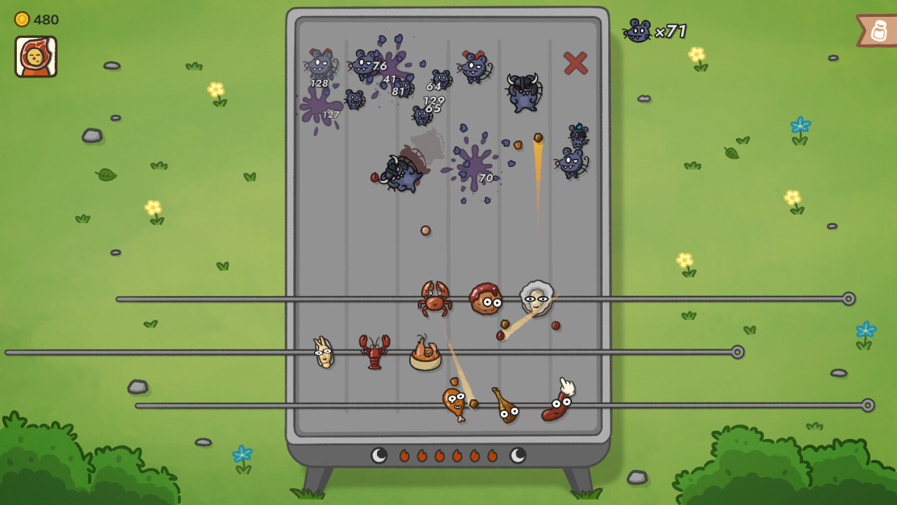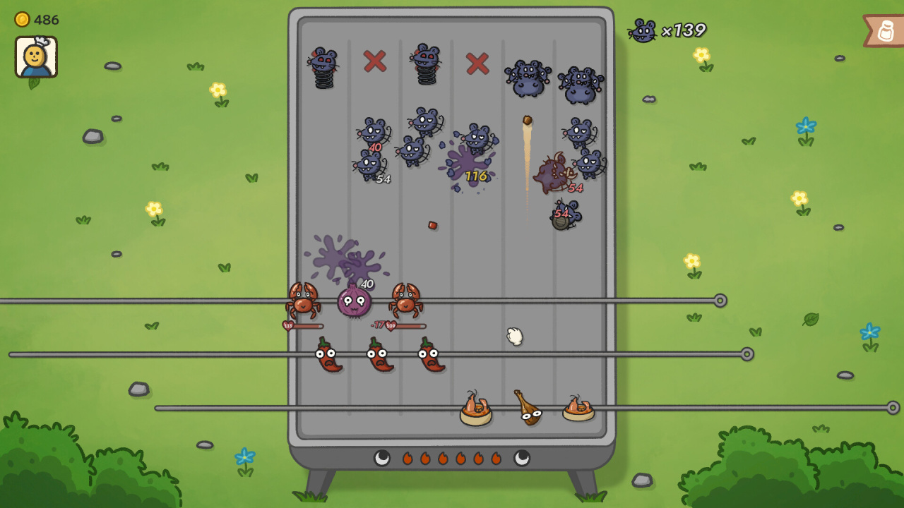 Под управление поступает Гриль-мастер, ответственный за сохранность готовящихся блюд. Успех напрямую зависит от продуманной компоновки шампуров и грамотного подбора приправ. Стратегическая глубина Skewer Squad раскрывается через выбор одного из многочисленных персонажей, каждый из которых предоставляет стартовые бонусы и определяет стиль прохождения. Для эффективного противостояния постоянно растущей армии грызунов необходимо: