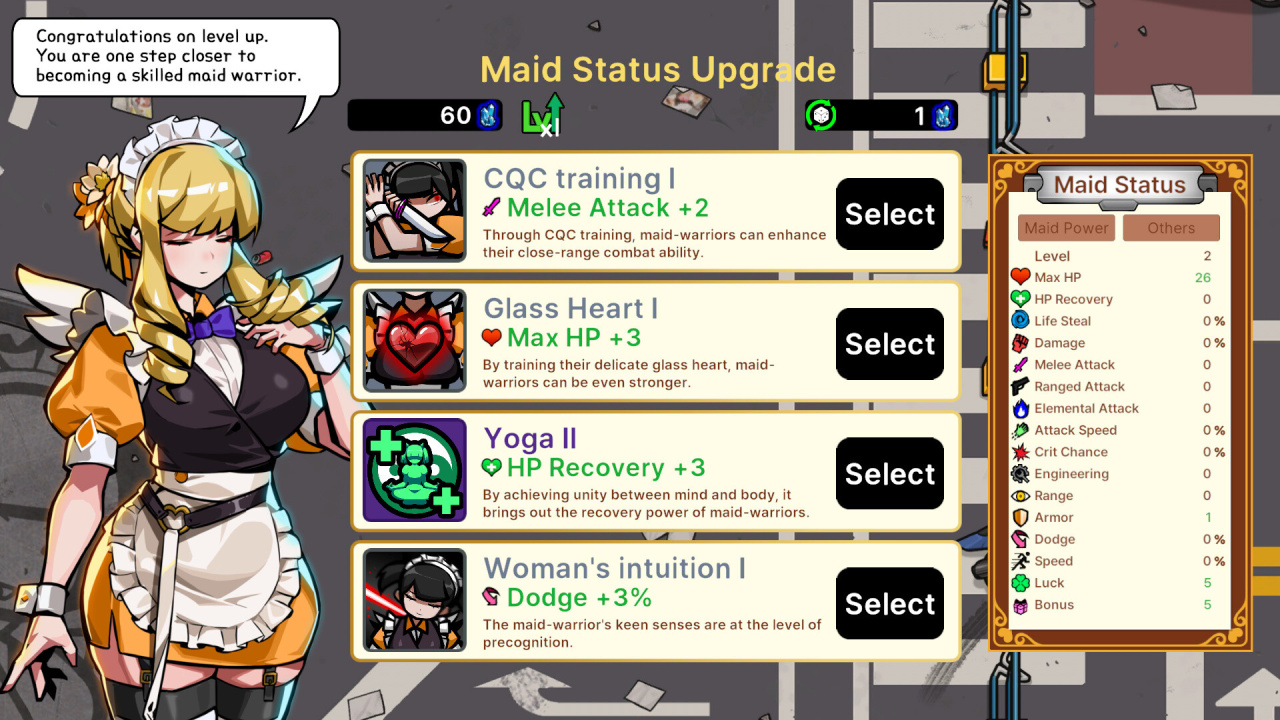 Внутриигровой магазин содержит более 100 наименований вооружения и вспомогательных предметов. Между атаками вражеских сил героини выбирают из случайно сгенерированного набора, влияя на свою сборку для последующих столкновений. Подобная механика позволяет использовать разные тактики для уничтожения неприятелей, без единственно верного пути. Управление перемещением и активацией умений создано для простоты, с автоматическим ведением огня, что обеспечивает доступный геймплей. Сложность нарастает по мере продвижения; численность и сопротивляемость врагов увеличиваются, требуя постоянной концентрации.