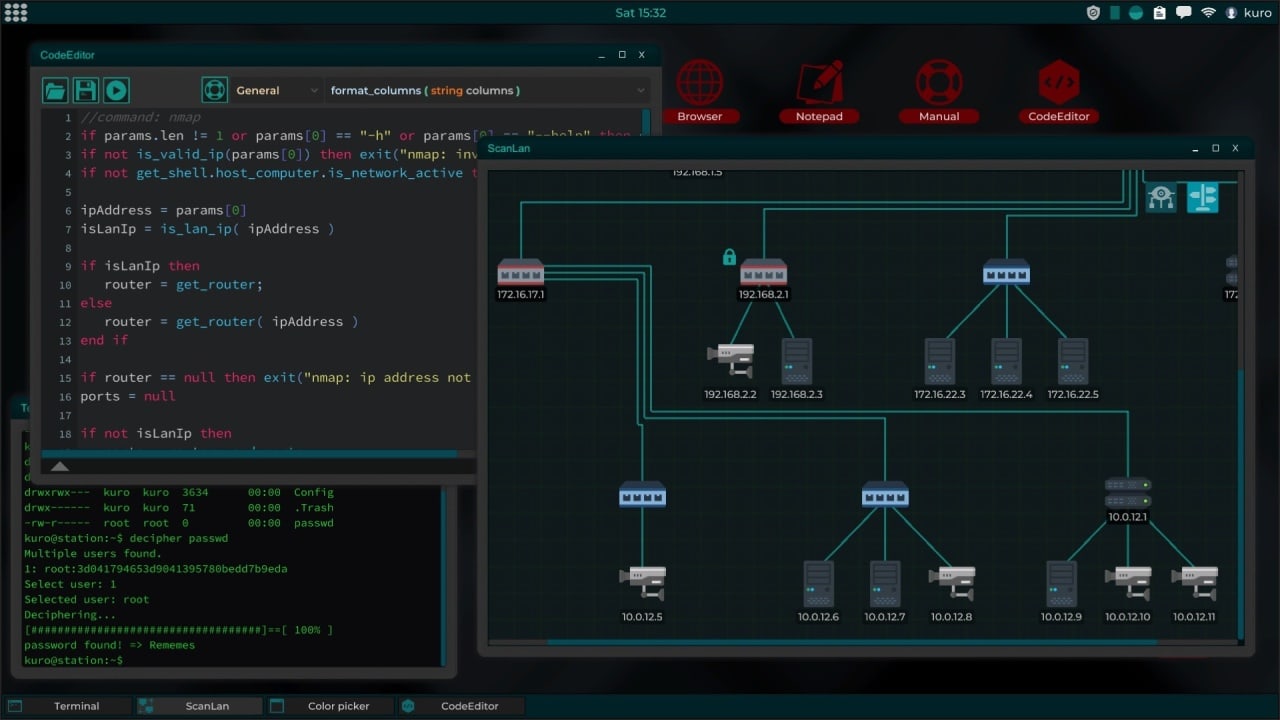Примечательно, что терминал Grey Hack основан на реальных командах UNIX и соблюдает все фундаментальные значения. Это самый основной инструмент для взлома и проведения хакерских атак. Необходимо исследовать сеть и создавать свою собственную репутацию самого известного мирового хакера. При каждой сессии игрок будет вносить изменения на чужих компьютерах. Даже если пользователь не в сети, его ПК доступен для других хакеров, которые могут попытаться его взломать.