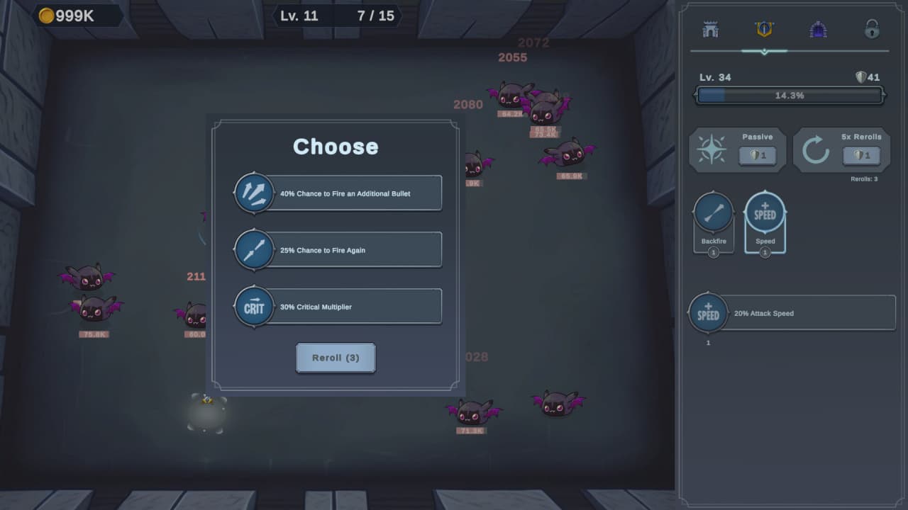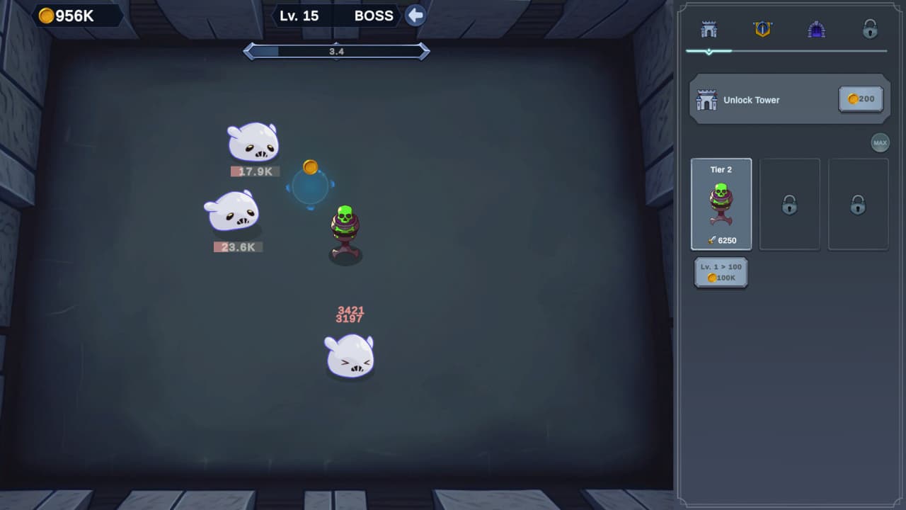 Основа противостояния заключается в размещении на поле до 3 башен из 5 доступных типов, которые автоматически атакуют волны монстров. Противники не наносят урон, но с каждым этапом их запас прочности серьезно возрастает. Заработанное золото тратится на повышение уровня башен до 50, а затем на улучшение их ранга, что сбрасывает прокачку до 1. Именно такой цикл составляет ядро процесса в Samawa Idle. Каждые пять раундов на арене появляется мощный босс, требующий от обороны максимальной эффективности и правильного подбора перков, таких как шанс дополнительного выстрела.