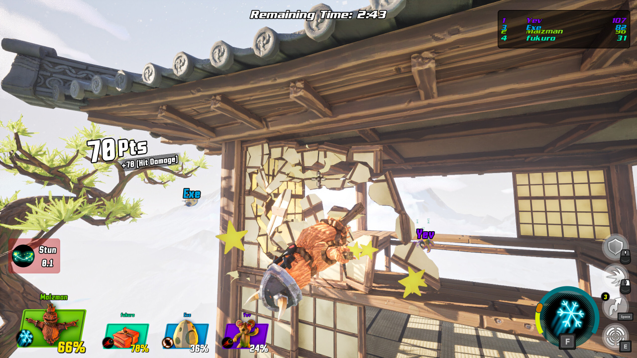 Главной задачей каждого матча является выживание — необходимо остаться последним уцелевшим объектом на карте. Для достижения этой цели в Prop Sumo предусмотрен арсенал разнообразных приемов, а путь к победе лежит через постоянное совершенствование своих навыков.
